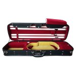 Sturdy woodshell violin case. Full suspension. Cordura cover with rain flap, Two accessory pockets, four bow holders, built-in hygrometer, Instrument blanket, Clear string tube. Shoulder strap and exterior music pocket.